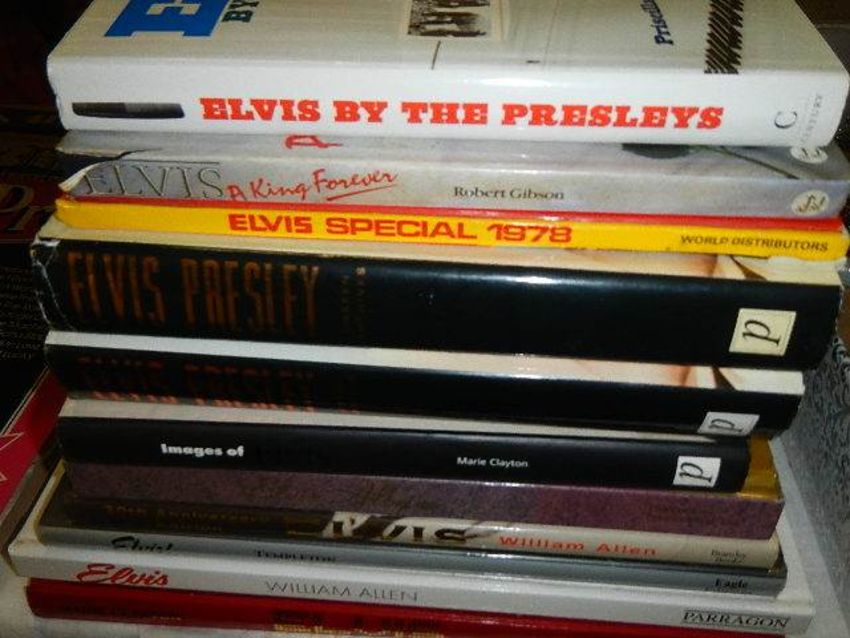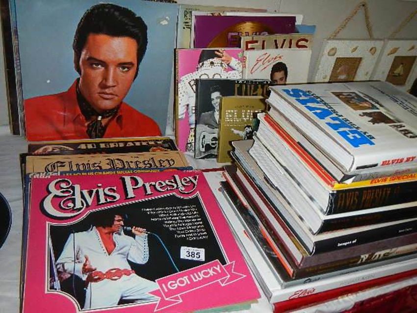 A quantity of Elvis LP records and hard back books.