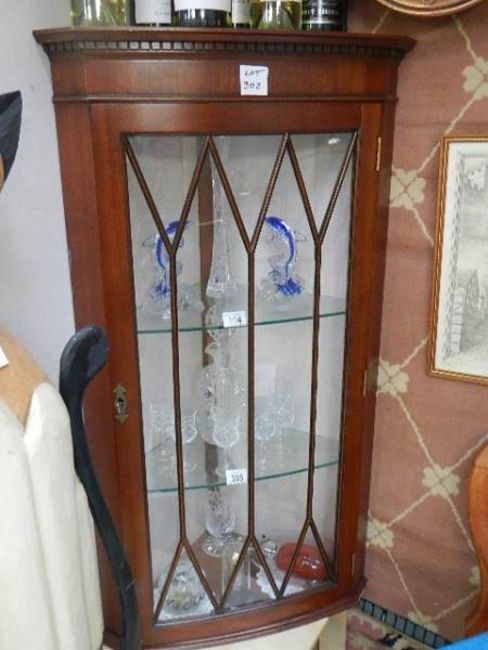 A good mahogany astragal glazed wall mounting corner cabinet. COLLECT ONLY.