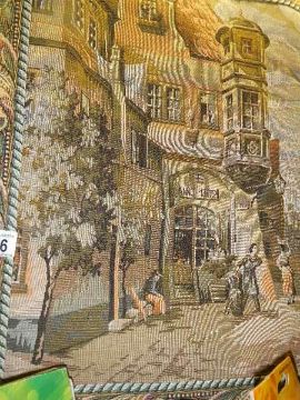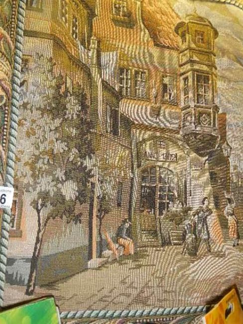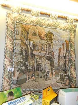 A tapestry wall hanging of a classical Italian? street scene, 58 x 64 cm.