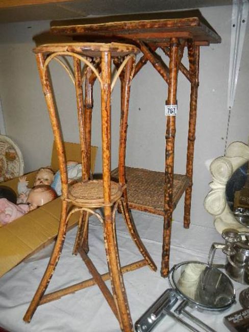 A bamboo table and plant stand. COLLECT ONLY.