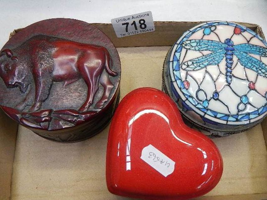 An old Tupton Ware dragonfly box and two others.
