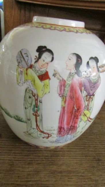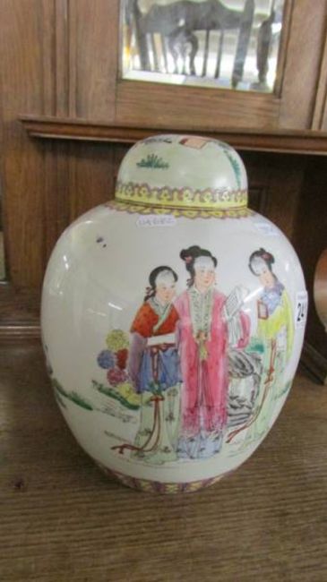 A 'YT' Chinese ginger jar, decorated in Hong King, 26.5 cm tall, COLLECT ONLY.