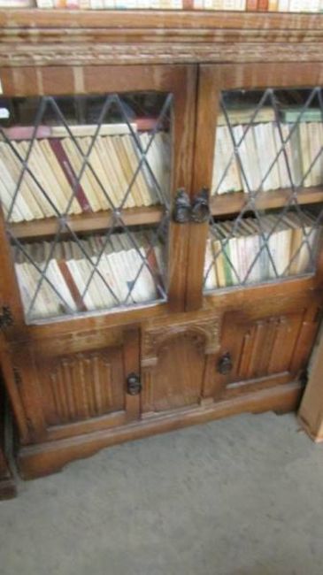 A 1950's oak display cabinet with leaded doors, 84 x 26 x 103 cm high, COLLECT ONLY.