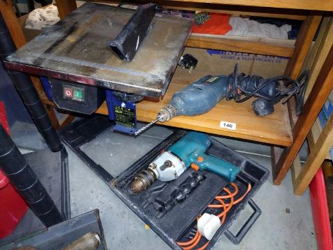 A Craft water cooled Ceramic tile cutter and 2 Black and Decker drills