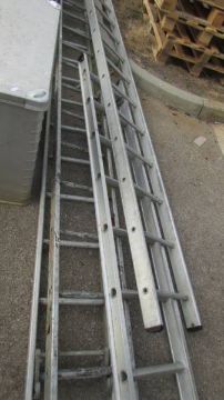 Four aluminium ladders, one with brace. COLLECT ONLY.