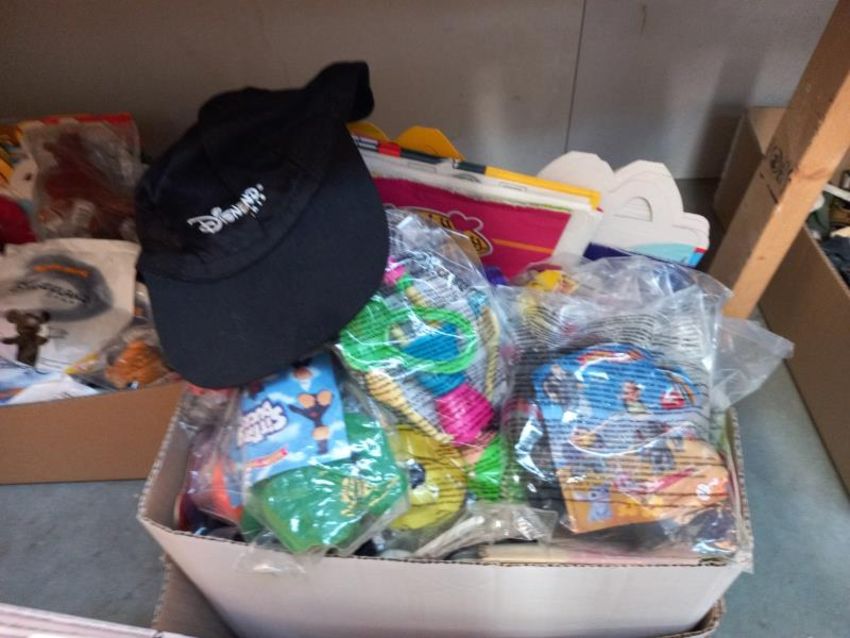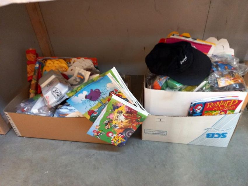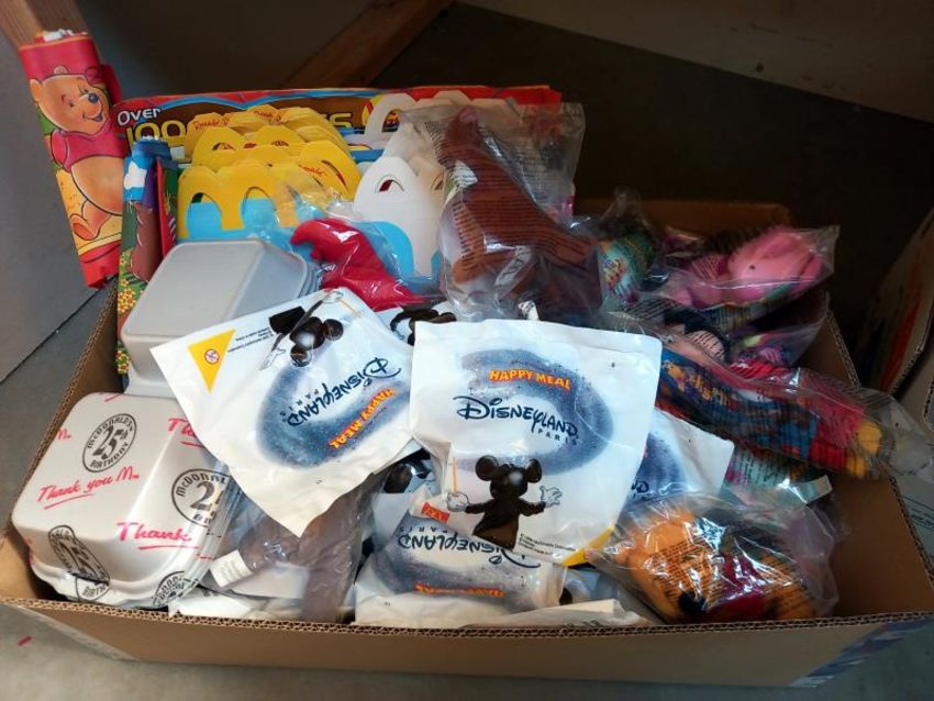 A large lot of McDonalds toys still in bags, from the 90's and 2000's, may have some complete lots includes, Winnie the Pooh, Action Man, My little Pony, Barbie etc. plus flags, masks, happy meal boxes etc.