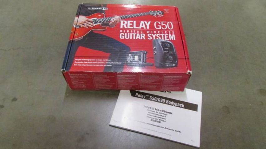 A boxed relay G50 digital wireless guitar system with instructions.