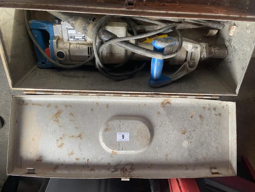 A Kango 110V concrete breaker, in working order, including chisels.