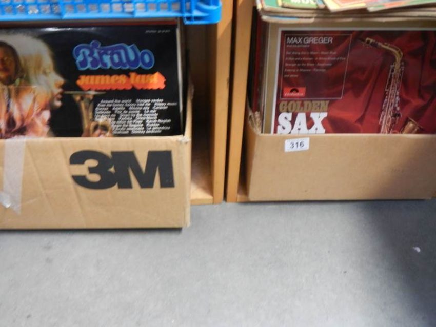 Two boxes of LP records.