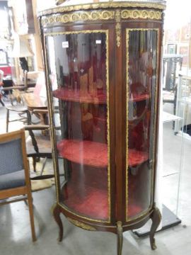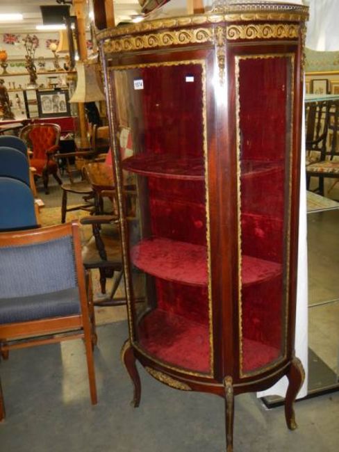 A 19th century French demi lune vitrine, 150 cm tall.COLLECT ONLY.