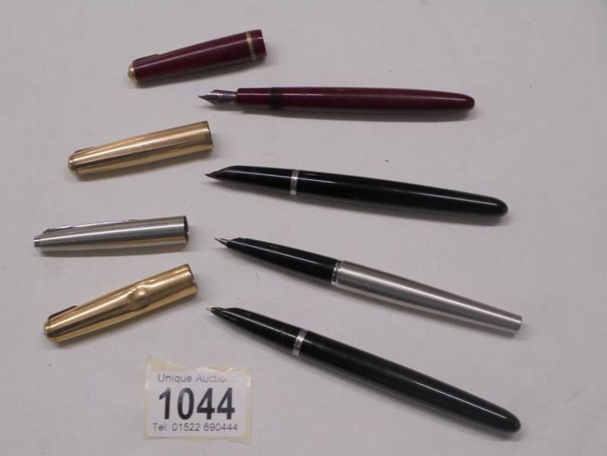 Three Parker fountain pens and one other.