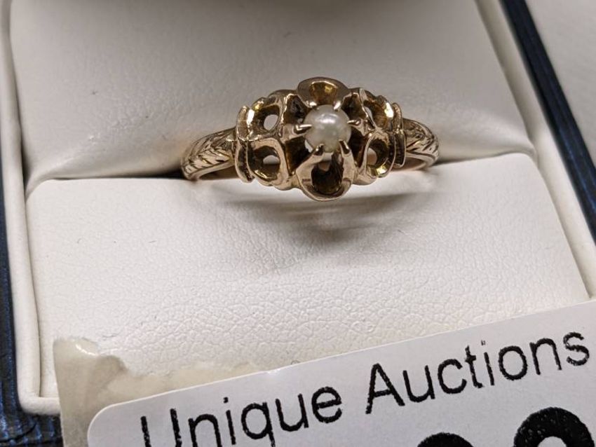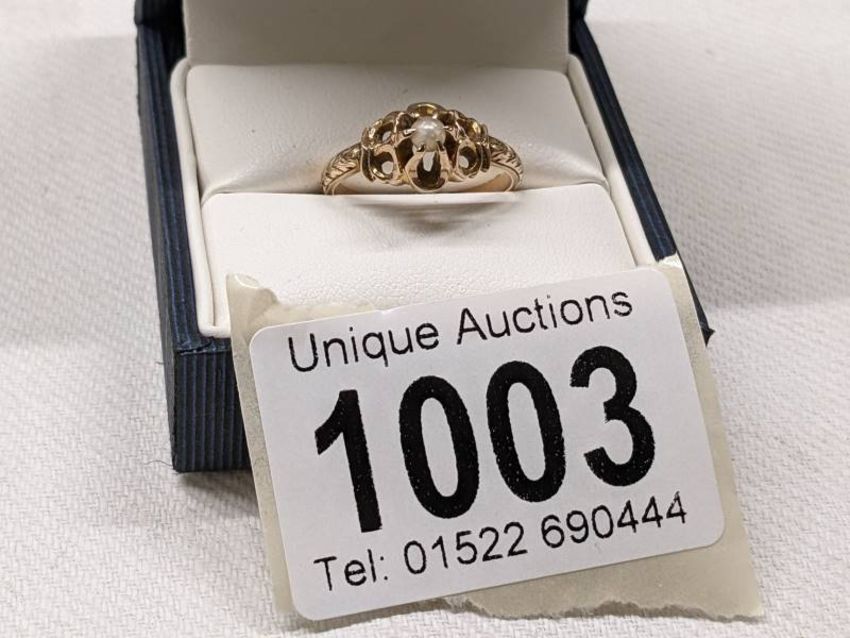 A 9ct gold ring set seed pearl, size L, 2.3 grams, Hall Marked rubbed.