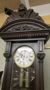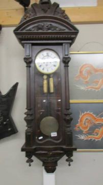 A Victorian mahogany twin weight Vienna wall clock, COLLECT ONLY.