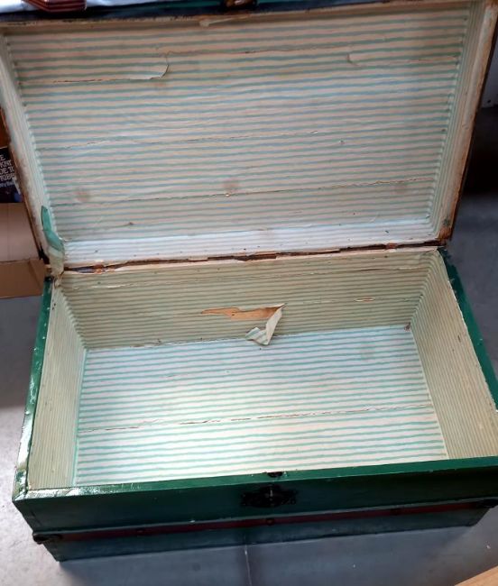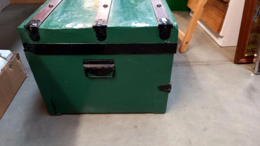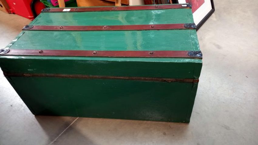 An old painted steamer trunk - 80cm x 47cm x 39cm high. COLLECT ONLY
