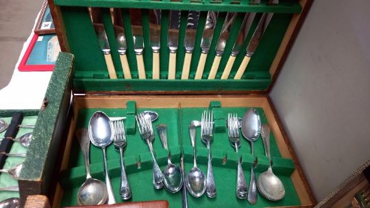 3 cased sets of cutlery, a cased set (incomplete) & an inlaid box