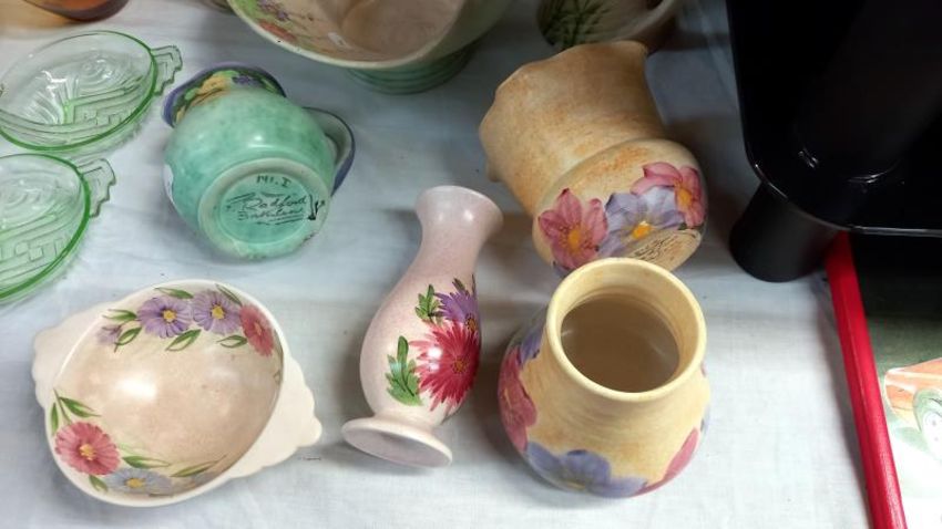 A quantity of Radford pottery etc.No cracks or chips. The bowl with handles is stained under the glaze
