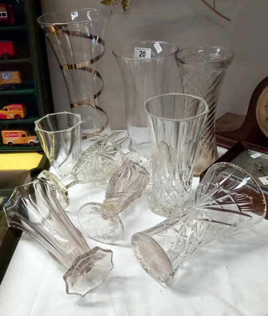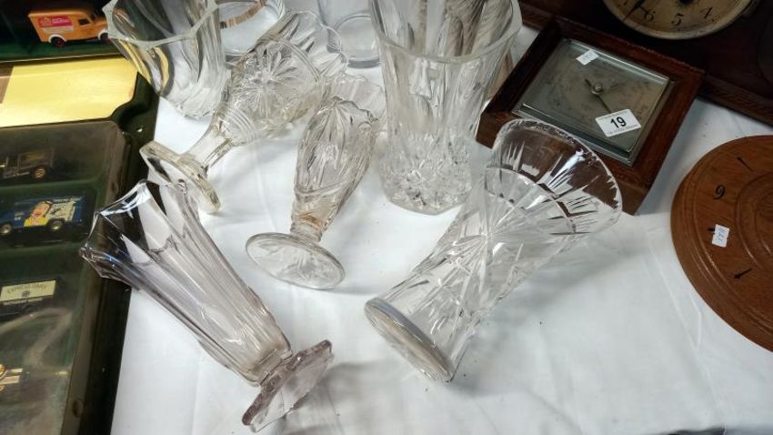 A quantity of cut & moulded glass vases