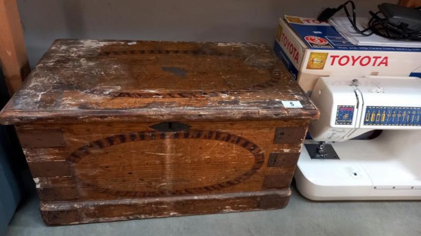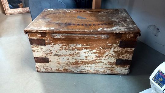 A Victorian pine box - 59cm x 36cm x 30cm. COLLECT ONLY