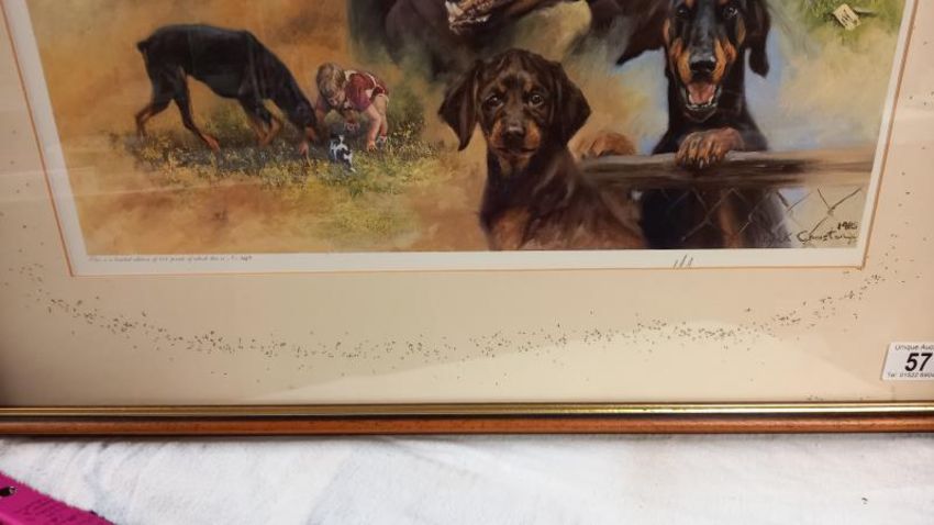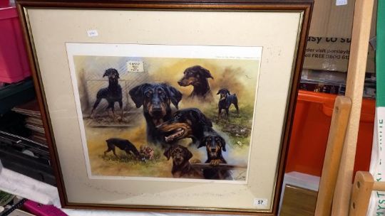 A limited edition print 649/850 of Doberman 'guard dogs on duty'