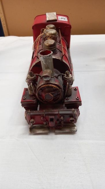 A pressed steel tinplate model ornament of a steam train length 33cm
