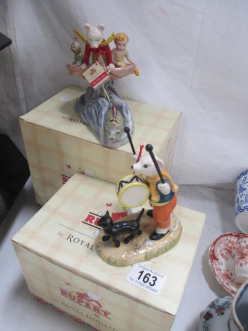 Two boxed Royal Doulton Rupert figures "Banging his Drum" and "Rupert Rides Home"