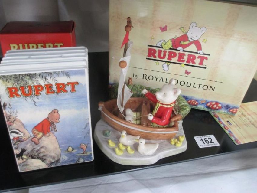 A boxed Royal Doulton Rupert figure "Captain Rupert" and a boxed Rupert money boxAll undamaged and with boxes, certificates and polystyrene linings
