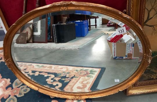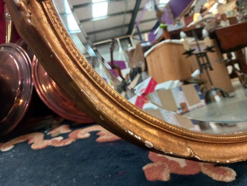 A vintage ormalu gilt framed oval bevel edged mirror COLLECT ONLY