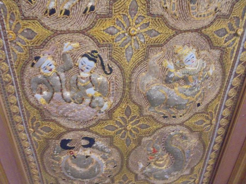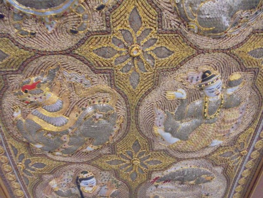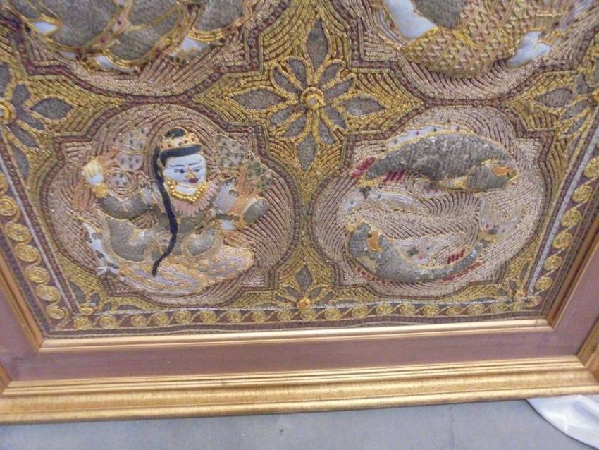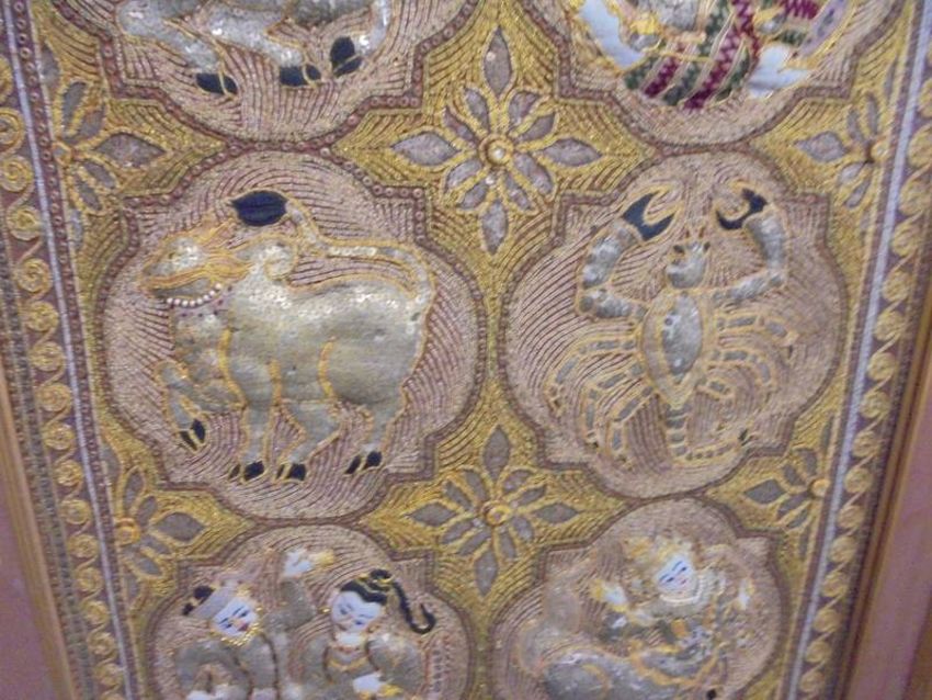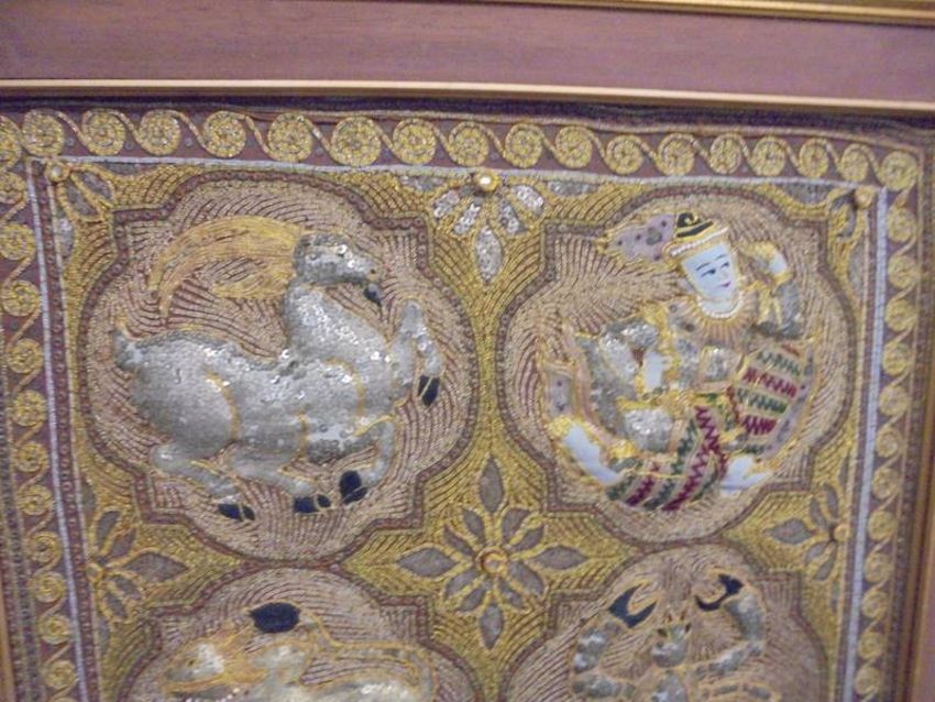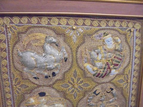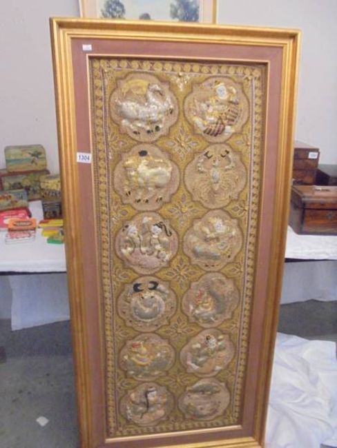A framed oriental embroidered panel featuring the signs of the Zodiac, COLLECT ONLY.
