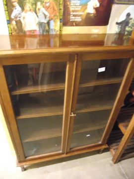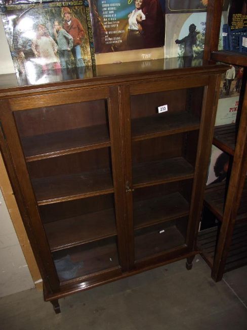 A glazed darkwood bookcase 89cm x 27cm x 122cm
