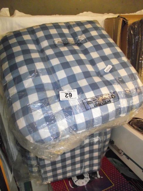 2 packs of 4 blue gingham kitchen chair seat cushions and a matching tablecloth