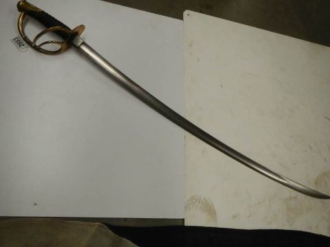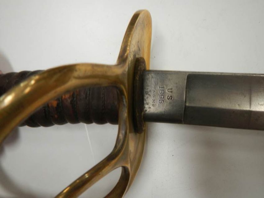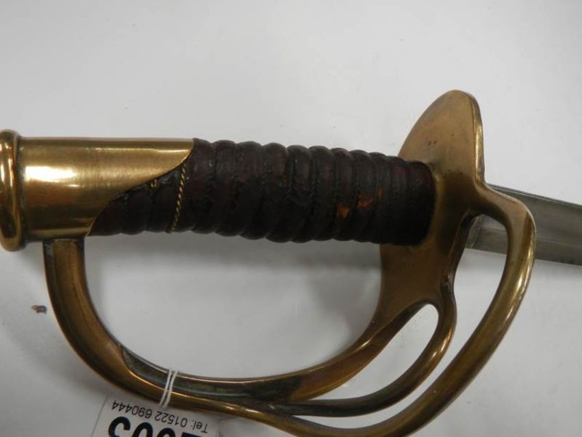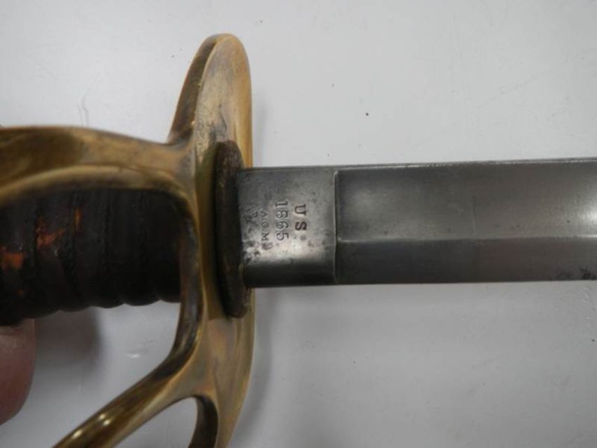 A US 1865 Sabre with brass hilt and leather grip, COLLECT ONLY.