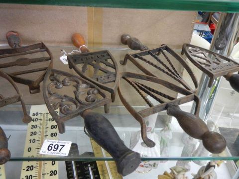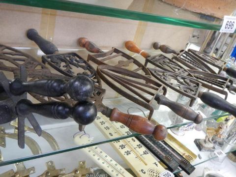 A quantity of flat iron trivets.