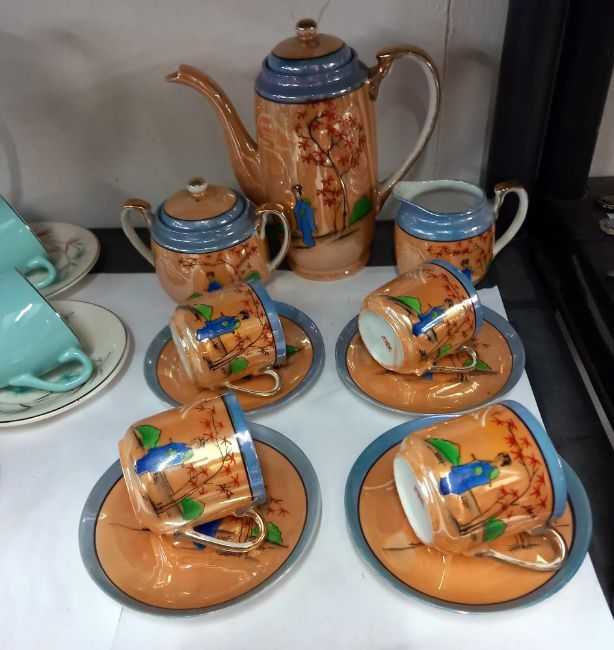 A Japanese hand painted coffee set & a hostess Cornflower coffee set COLLECT ONLY