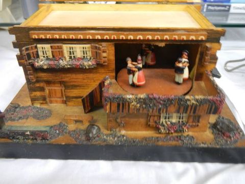 A vintage Swiss cottage musical box.