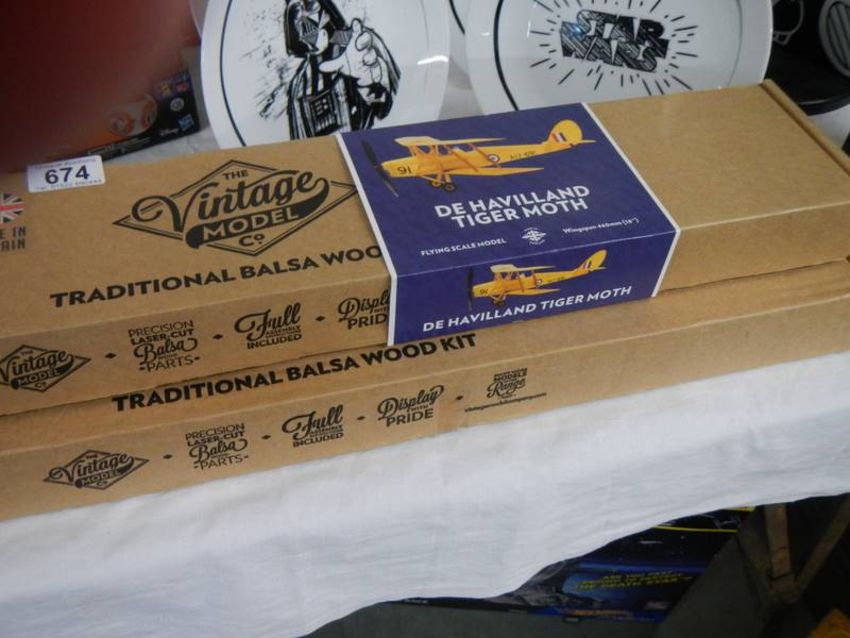 Two vintage Model Co traditional balsa wood model aircraft - De Haviland Tiger Moth and Sopwith Triplane.