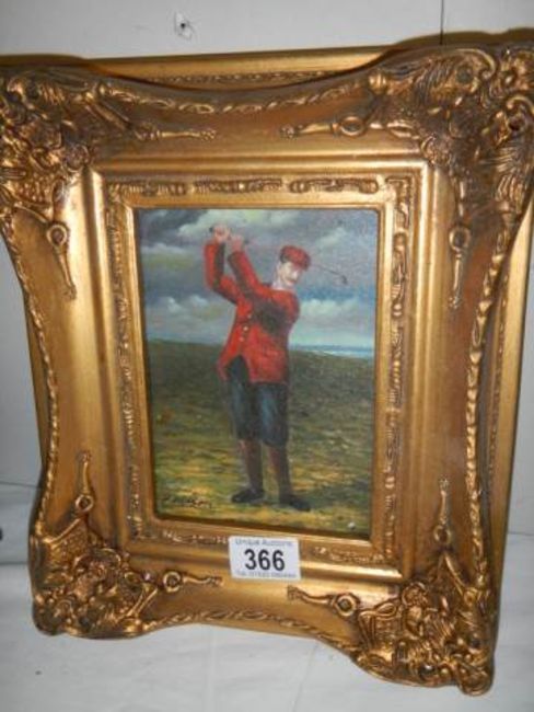 A gilt framed study of a golfer.