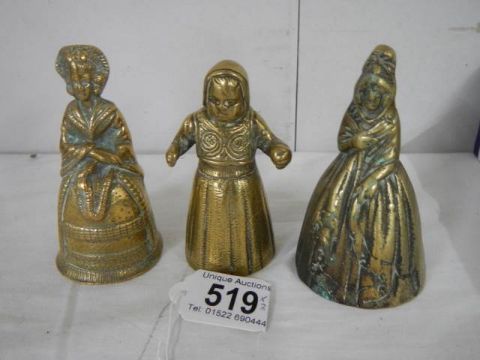 Three early 20th century brass bells.