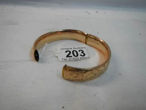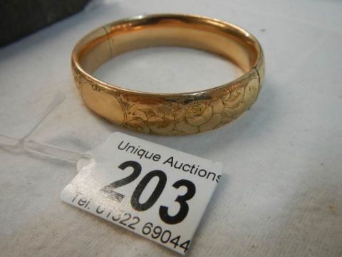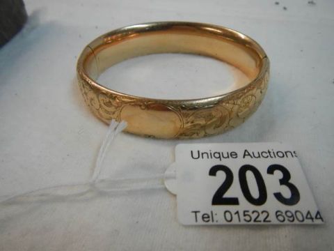 An engraved gold coloured bangle.