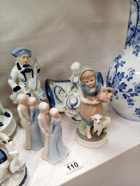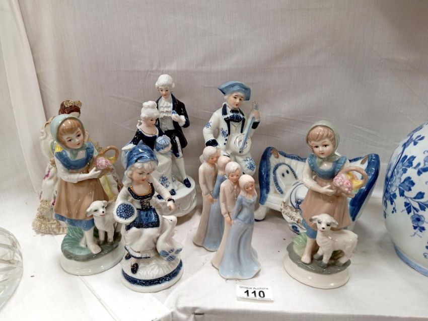 A quantity of blue & white plus other figures