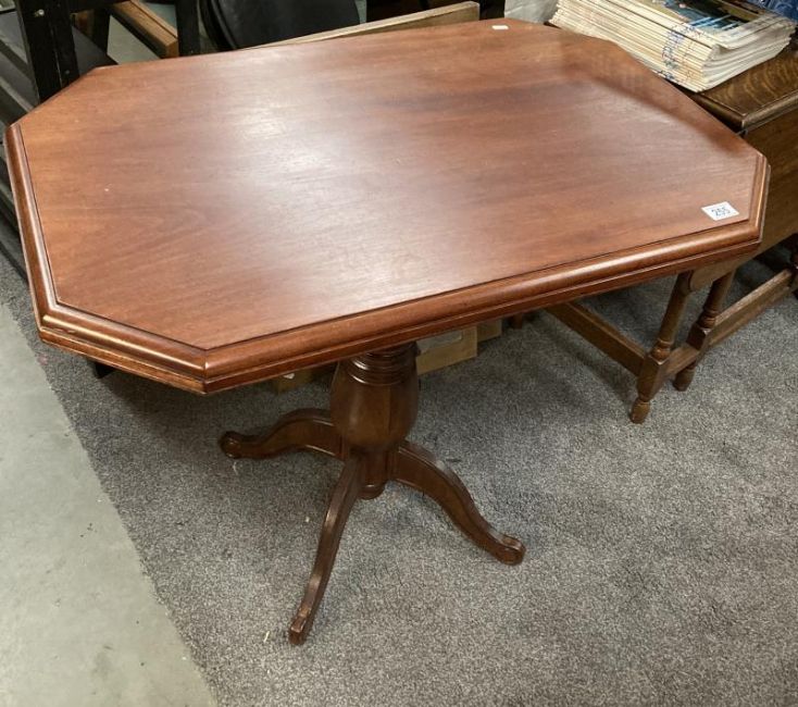 An octagonal mahogany occasional/hall table on turned pedestal 79h x 61 x 93 cm. COLLECT ONLY