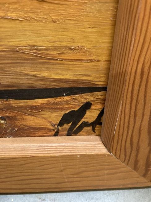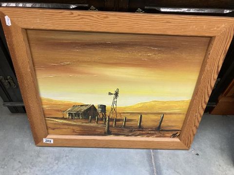 An oil on board sunset farmstead. COLLECT ONLY