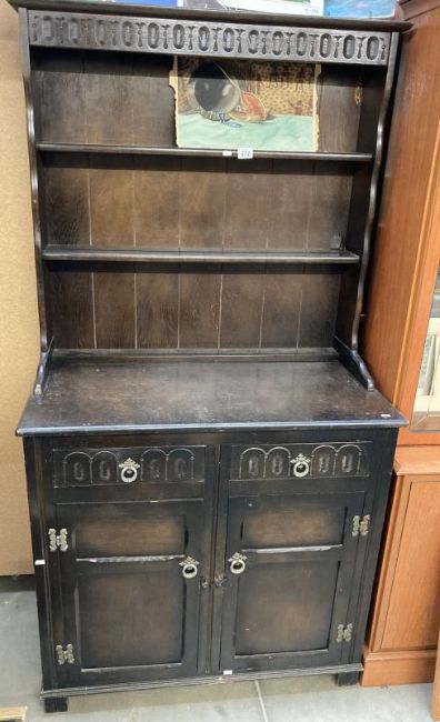 An Oak Ercol style dresser with plate rack 180h x 95 w x 49 d COLLECT ONLY