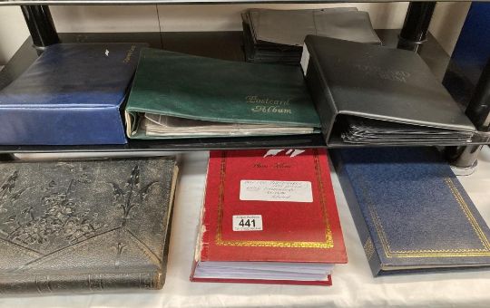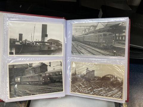 A mixed lot of Lincolnshire railway photographs, Cigarette cards, Empty albums & An old album with black & white / sepia photos of people