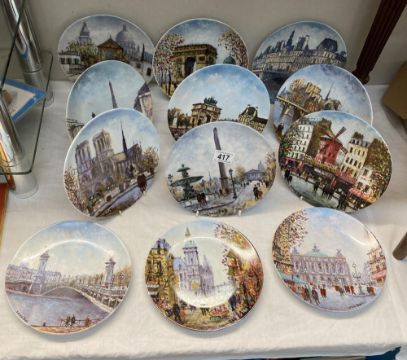 12 Limoges plates depicting French scenes