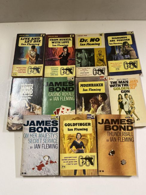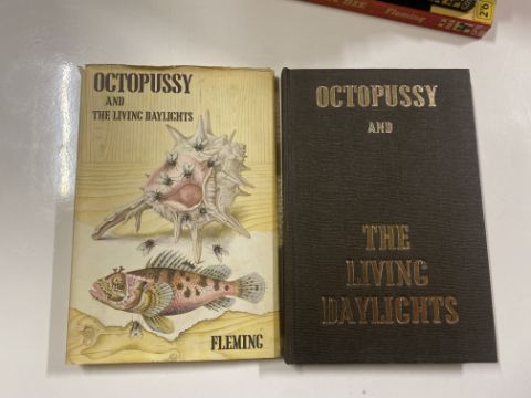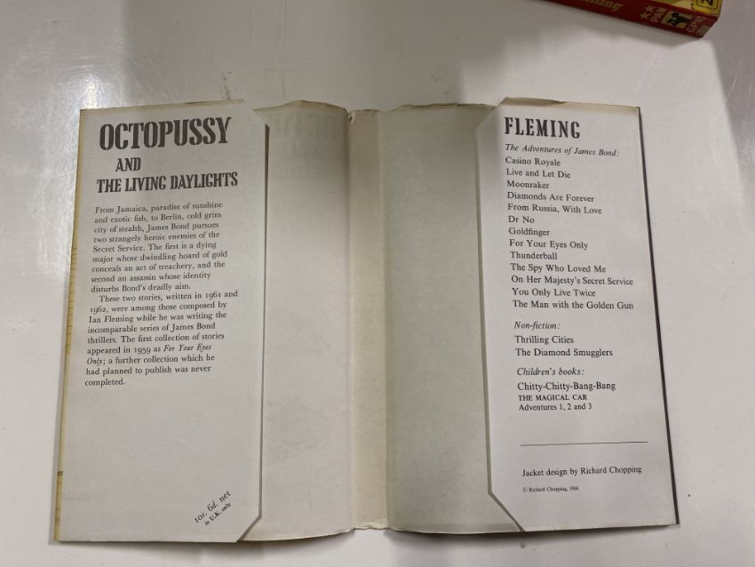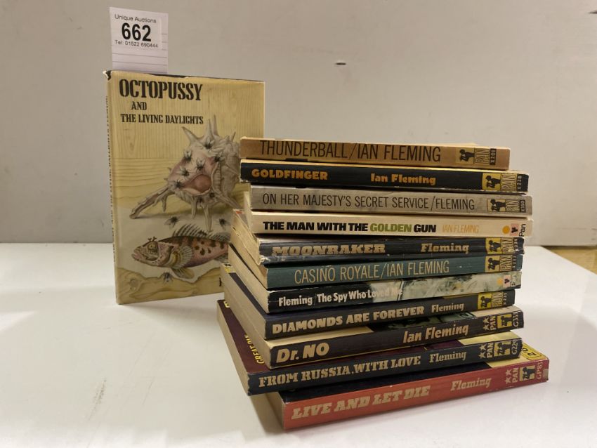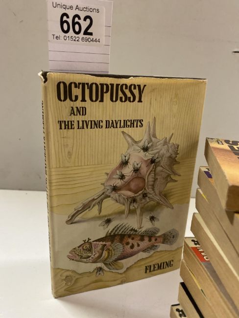 Ian Fleming Octopussy, The Living Daylights, 1962 with dust jacket & 11 vinateg Fleming paperbacks