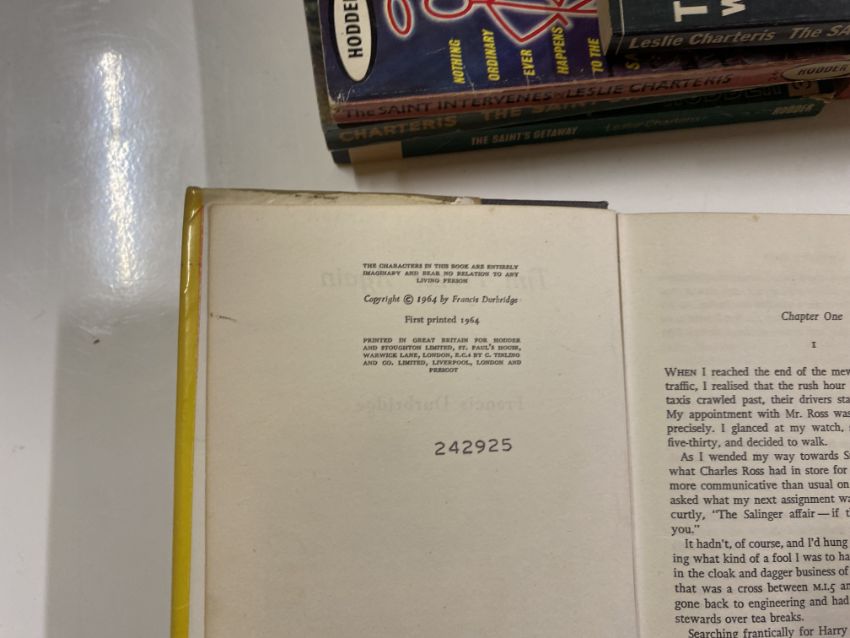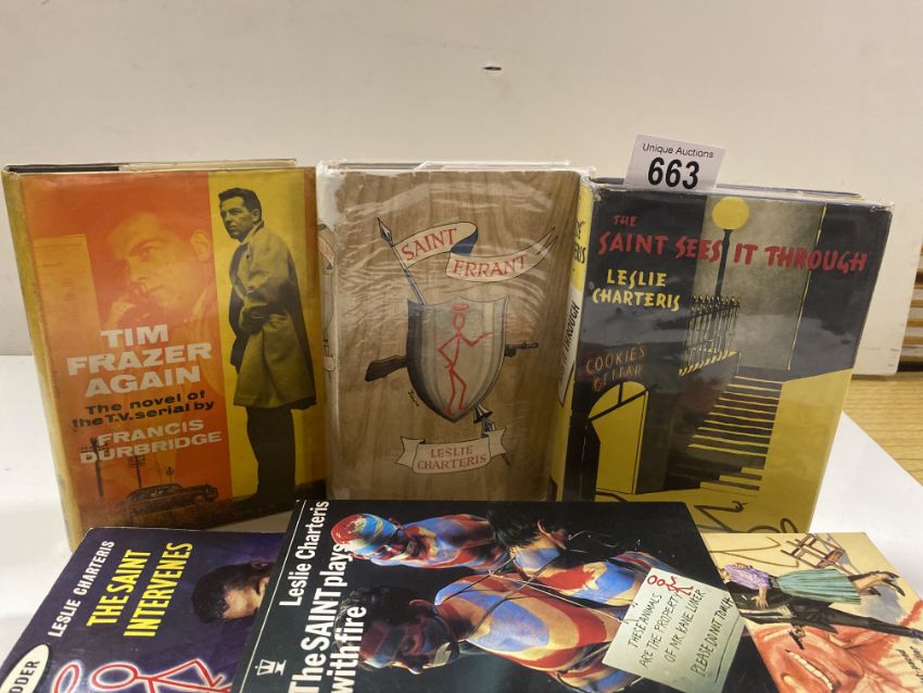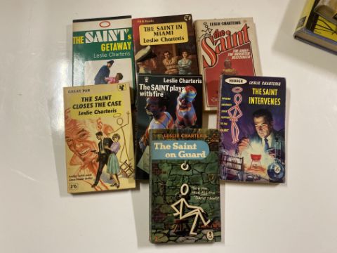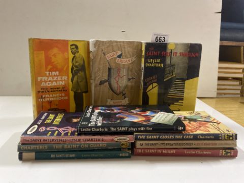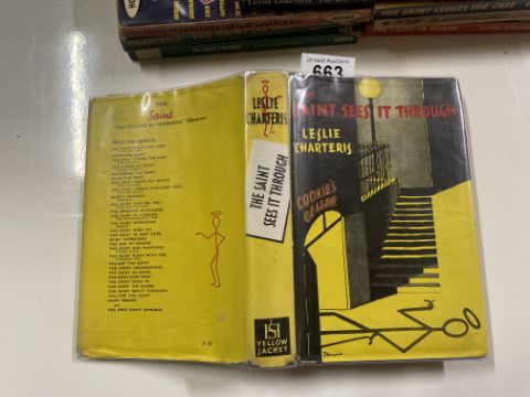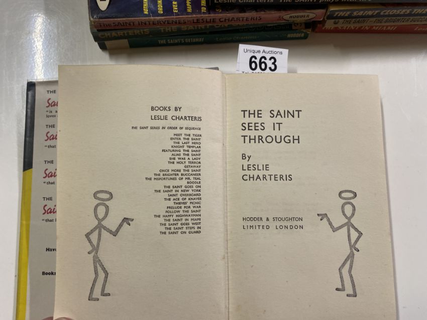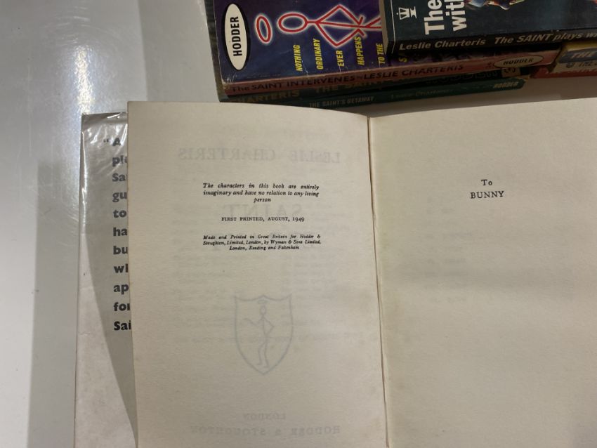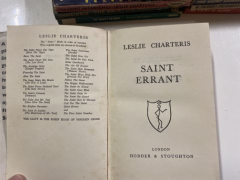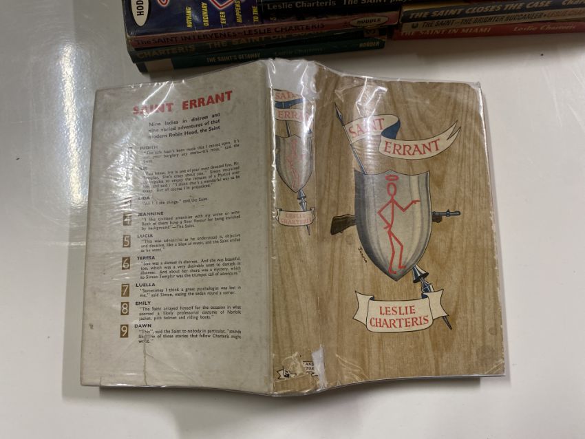 Charteris, Lesley including The Saint Errant, 1949 with dust jacket, The Saint Sets It Through 1947 with dust jacket & 7 vintage The Saint paperbacks