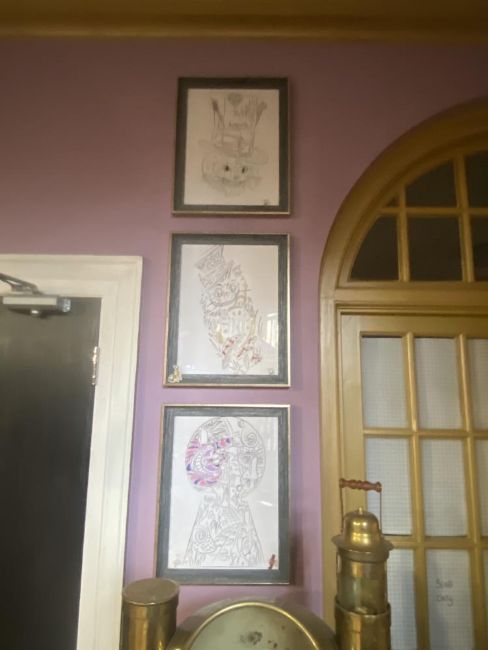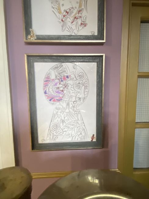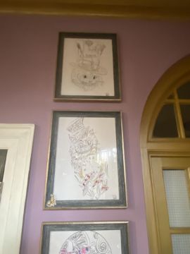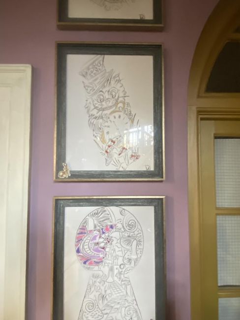 Three original framed and glazed Alice in Wonderland drawings by David Ward