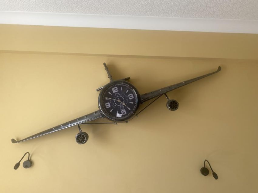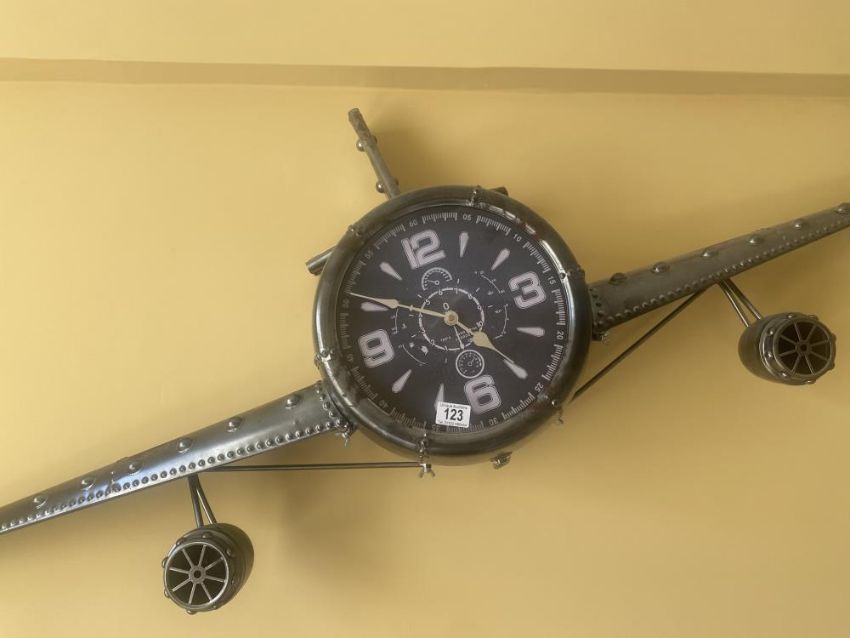 A clock in the shape of the front of an aeroplane, width 78 inches