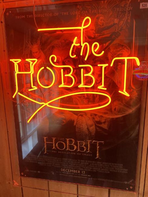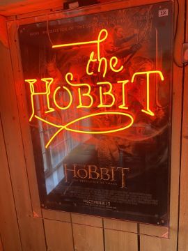 The Hobbit neon light with poster back, approx. 121 cm high x 86 cm wide.