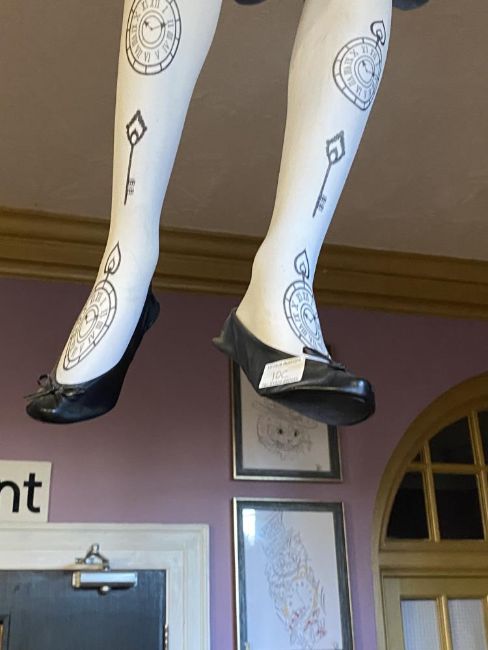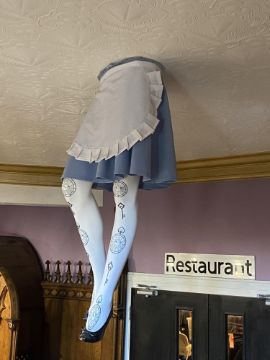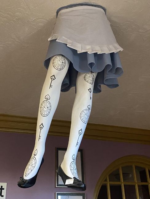A set of Alice in Wonderland legs - appearing to come through the ceiling